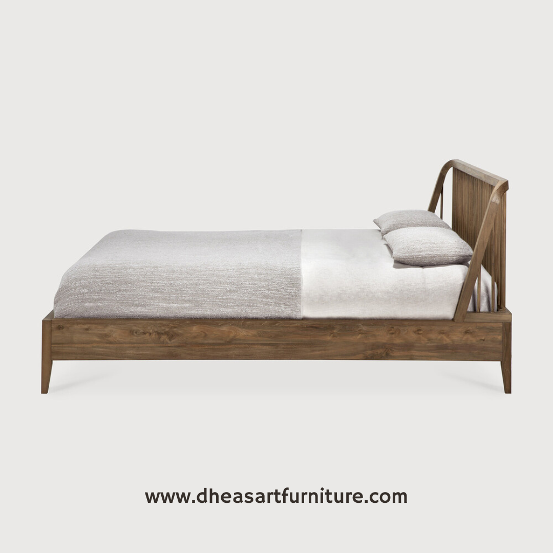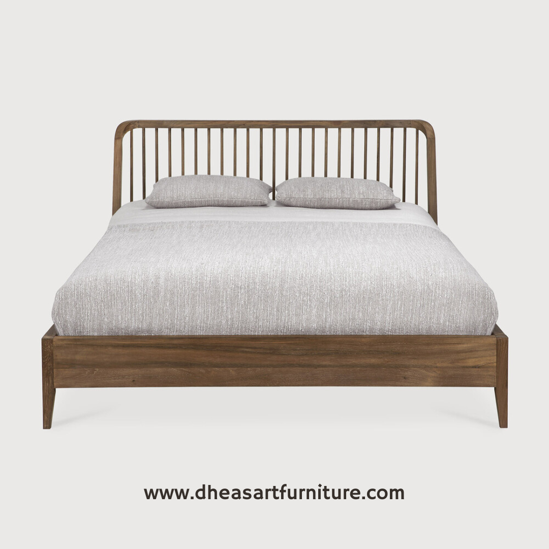 Bed Frame solid wood jari-jari design – tempat tidur jati jari jari king size natural wood cocok untuk Segala Gaya Interior.